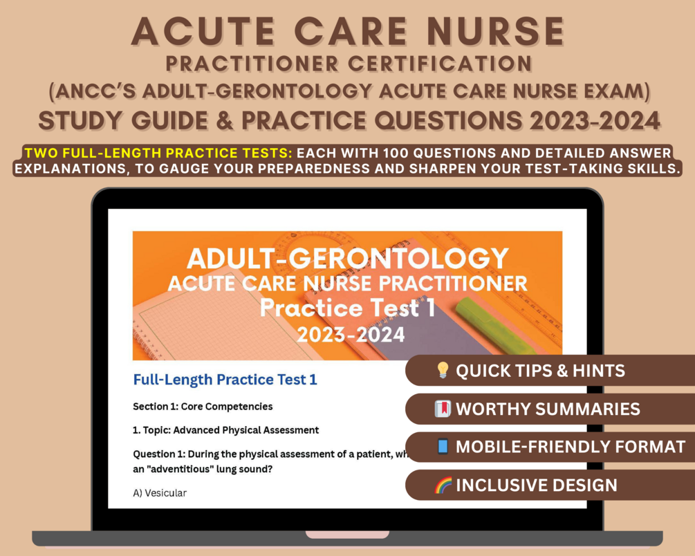 Adult-Gerontology Acute Care Nurse Practitioner Exam Prep 2023-2024 | Clinical Practice Mastery, and Practice Tests