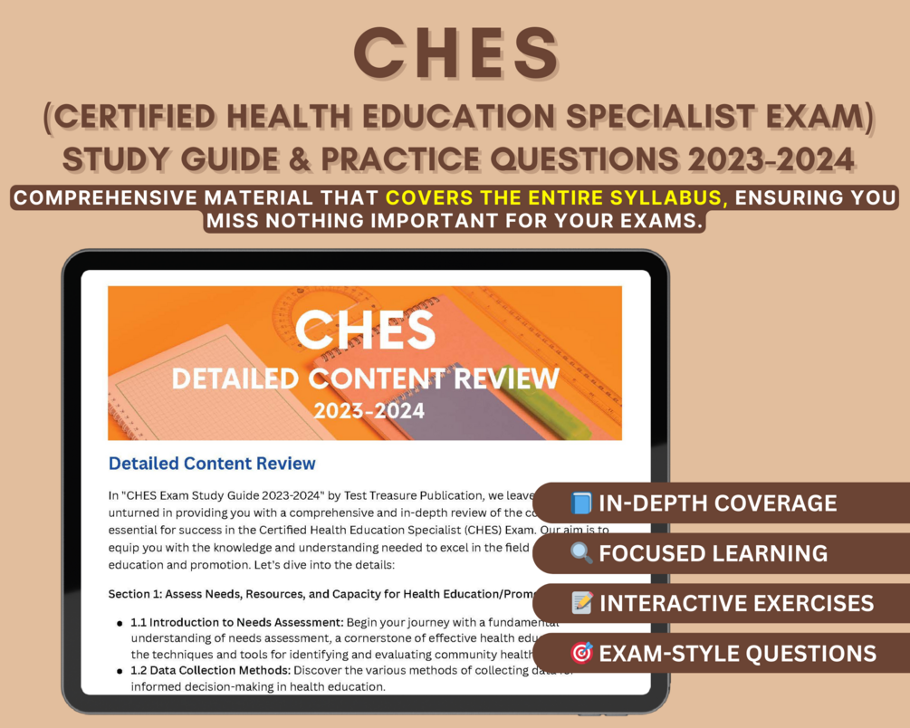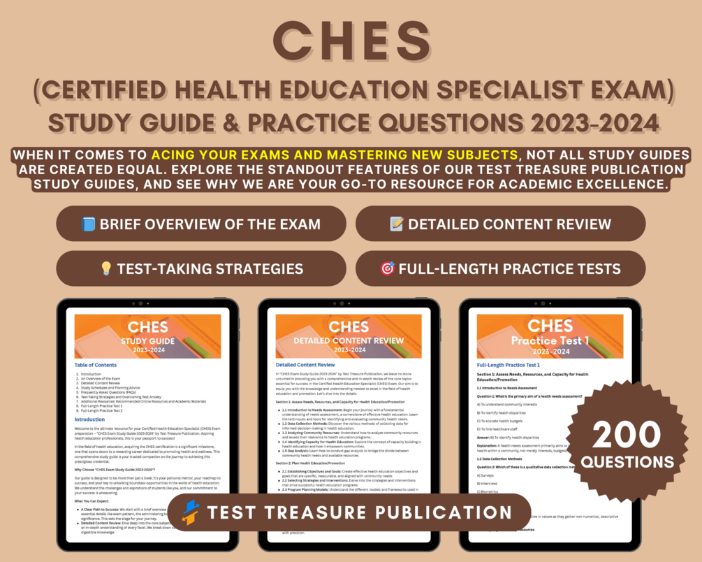 π Are you ready to embark on an extraordinary journey toward becoming a Certified Health Education Specialist (CHES)? Unlock the doors to a fulfilling career in health education and wellness promotion with our comprehensive "CHES Exam Study Guide 2023-2024."