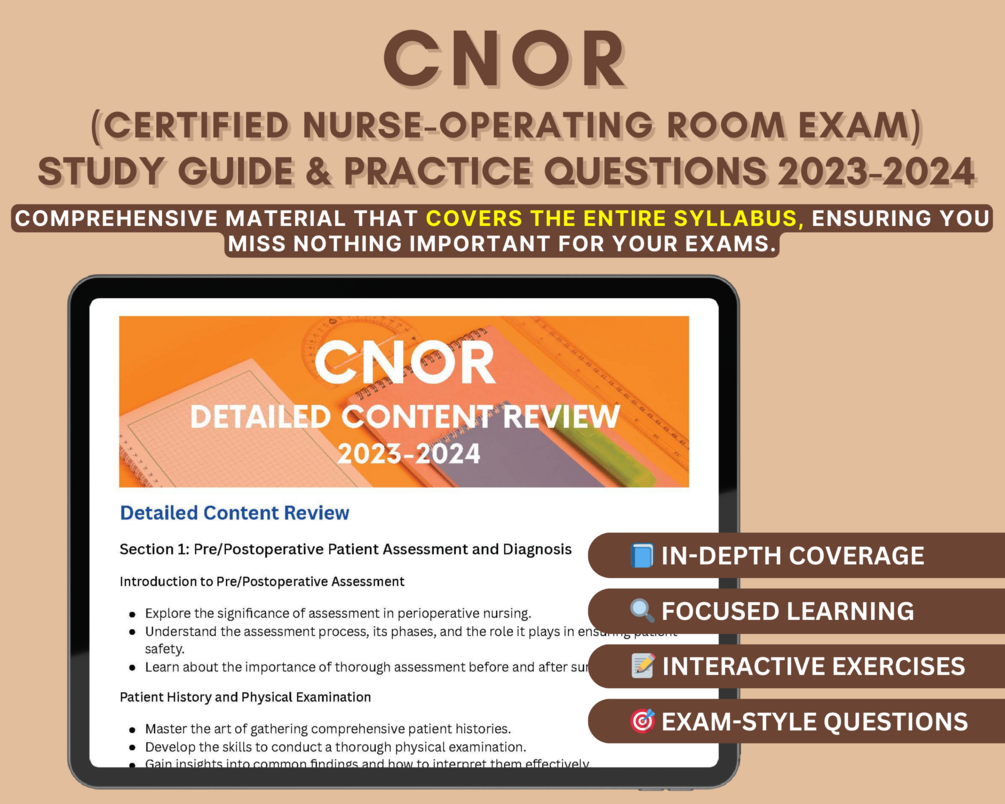 Unlock the doors to a rewarding career in perioperative nursing with our comprehensive CNOR Exam Prep Book. Designed for aspiring perioperative professionals, this study guide is your ultimate tool for success in the Certified Nurse-Operating Room (CNOR) Exam.