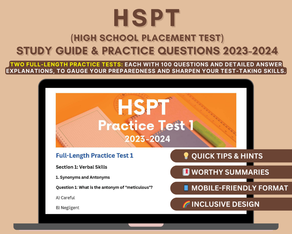 Unleash your full potential with our meticulously crafted "HSPT Prep Book 2023-2024"! This comprehensive study guide is your key to mastering the High School Placement Test (HSPT) with confidence.