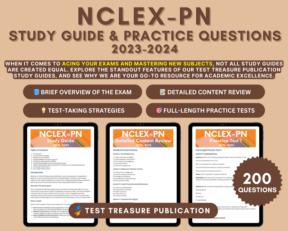 ๐ŸŒŸ Are you an aspiring practical nurse ready to triumph over the NCLEX-PN exam? Embark on an enriching journey with the "NCLEX-PN Study Guide 2023-2024: Ultimate NCLEX-PN Preparation Handbook" by Test Treasure Publishing.