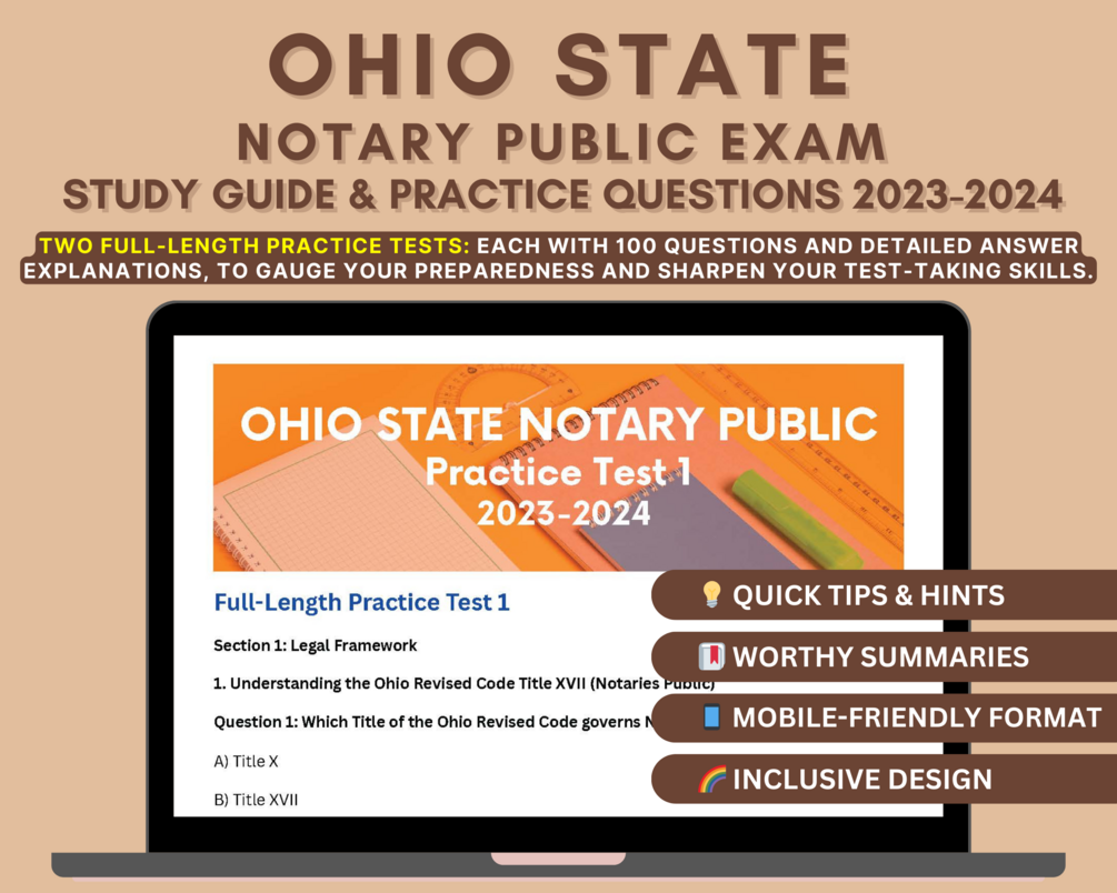 📘 Unlock the door to a successful notary journey with our comprehensive study guide tailored for the Ohio State Notary Public Exam 2023-2024!