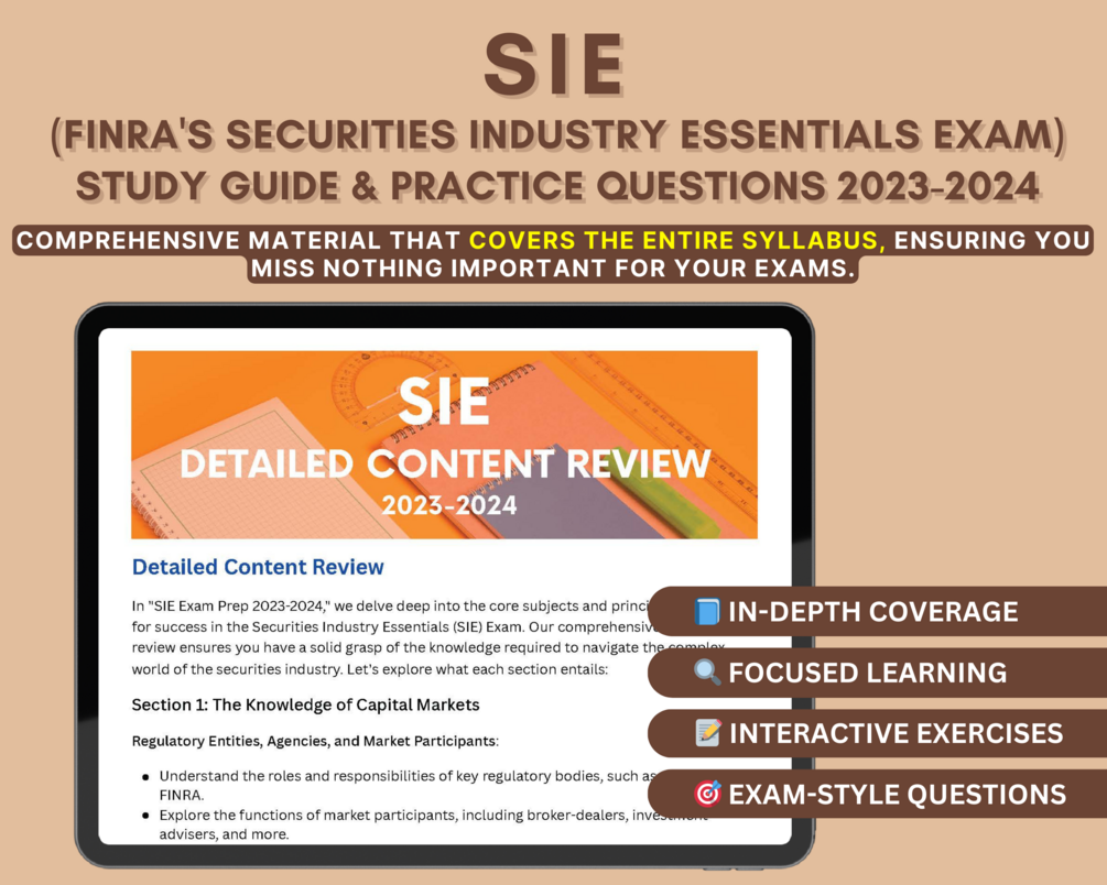 🔍 Are you gearing up for the Securities Industry Essentials (SIE) Exam in 2023-2024? Look no further! Our top-rated "SIE Exam Prep 2023-2024" study guide is your key to success in this critical exam.